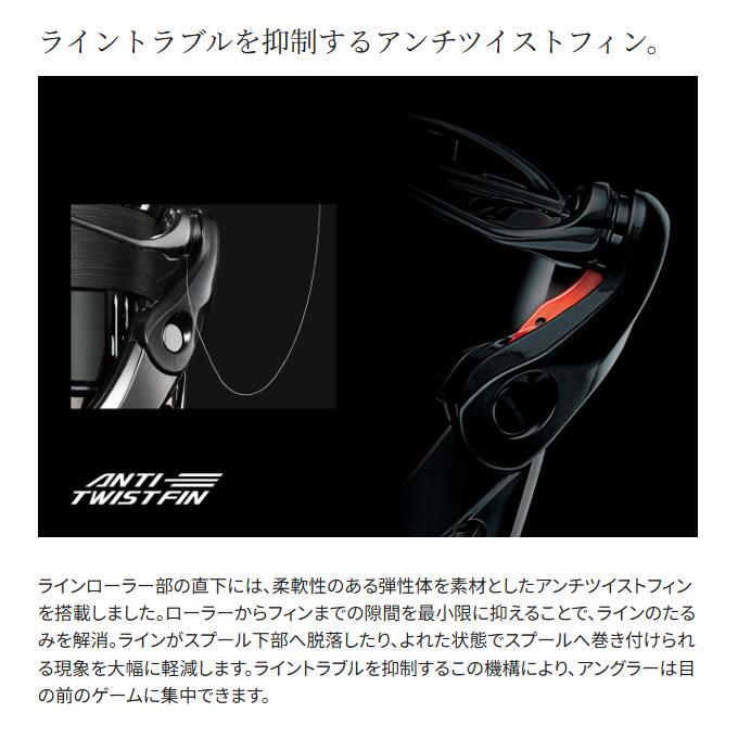 The ANTI TWIST FIN is an elastic fin positioned close to the line roller. By preventing the line from sagging, it reduces the occurrence of the line being sucked into the lower part of the spool and the line being wound onto the spool while twisted.